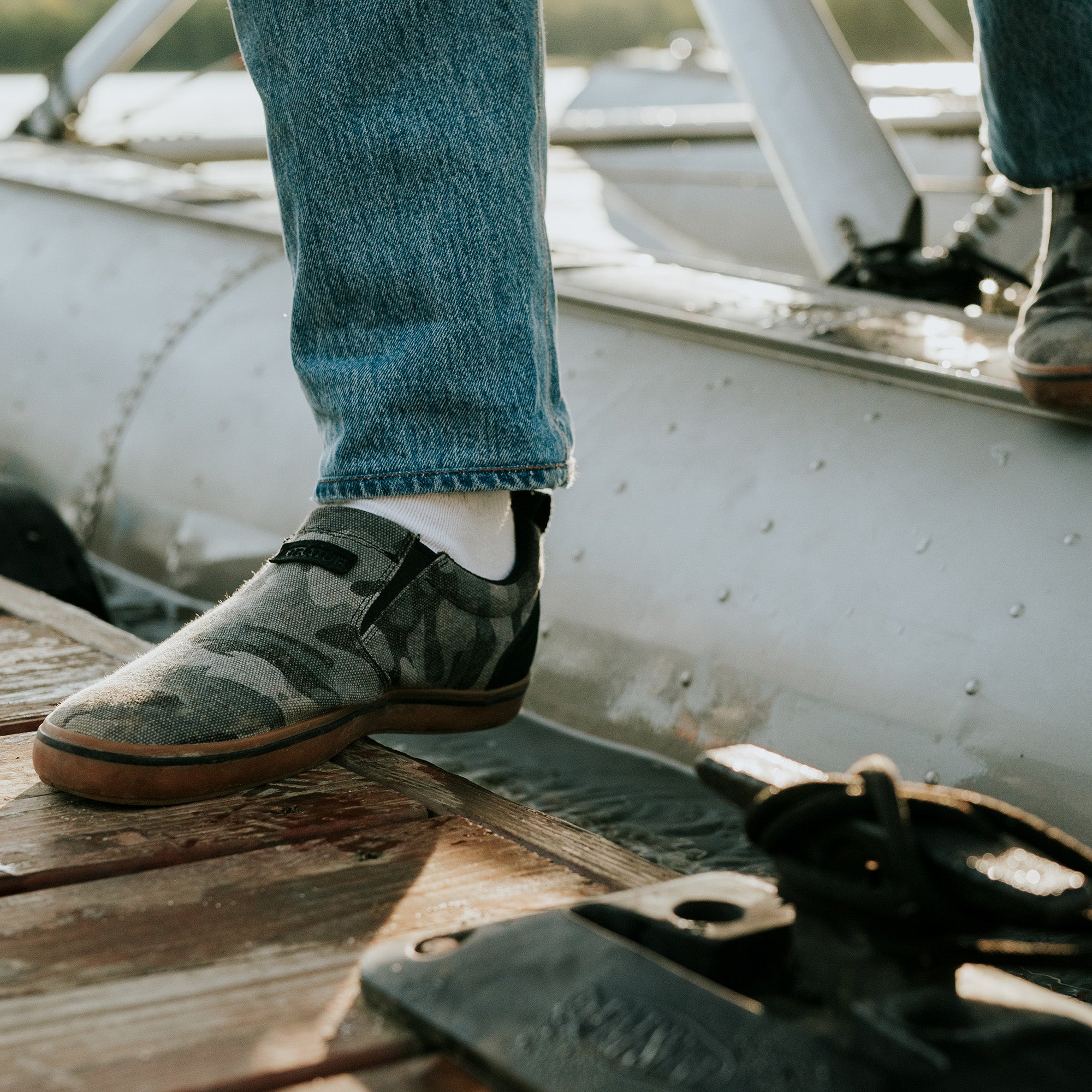 The Men’s Canvas Sharkbyte Deck Shoes are versatile enough to wear on or off the boat. They feature a durable water resistant canvas upper. rear pull tab for easy on and a reinforced leather panel at the heel for easy off. They not only look and feel great. but also keep you safe and sure-footed. thanks to our signature non-marking. slip-resistant chevron outsole featured on our Legacy Boots.