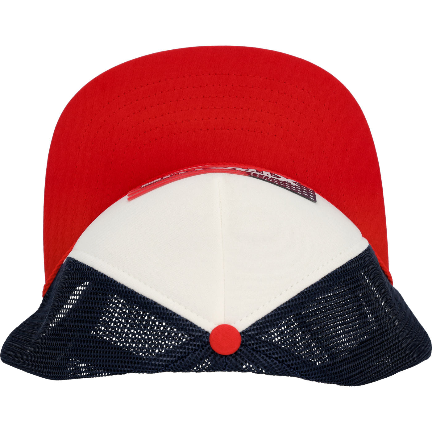 - Curved bill meshed back trucker with snap back closure