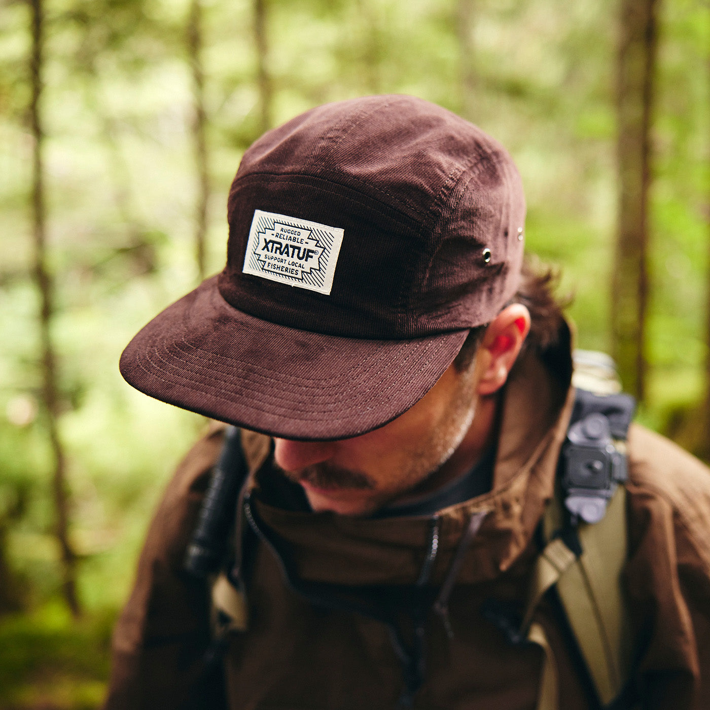The corduroy flat brim 5 panel cap comes with a woven Xtratuf logo on the front and a nylon adjustable closure.