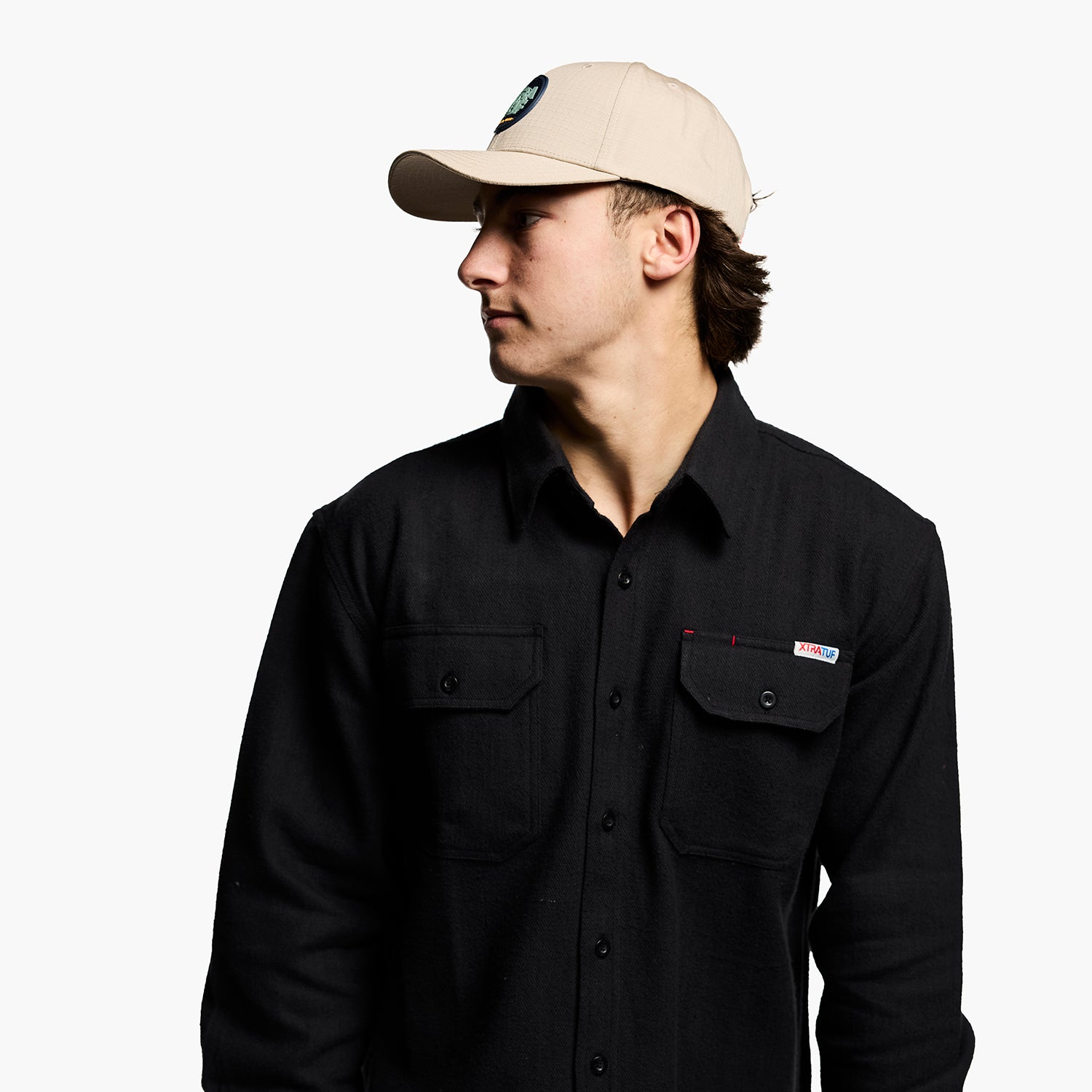 - DWR Cotton/Poly Ripstop 6 panel cap with arched brim