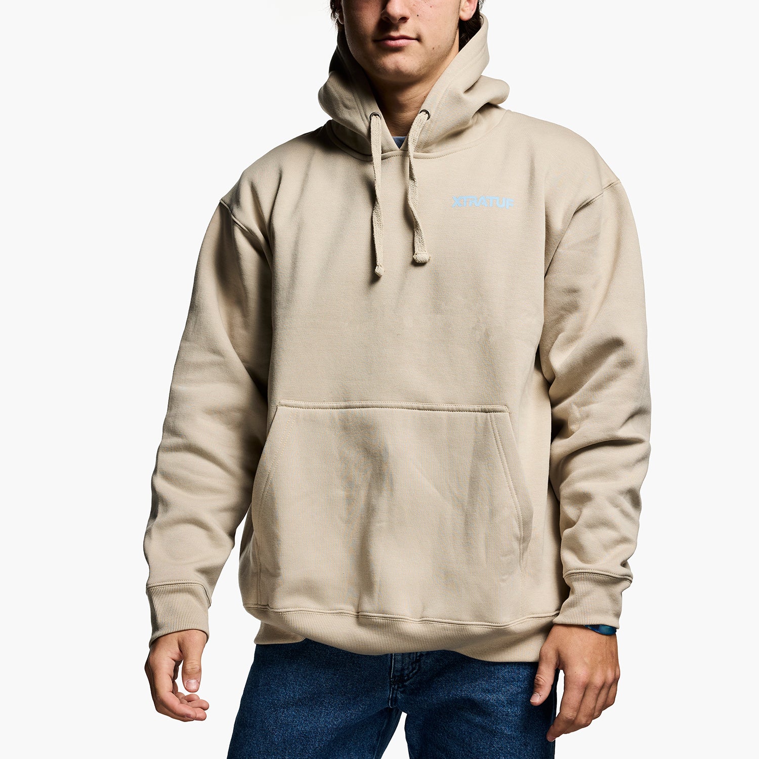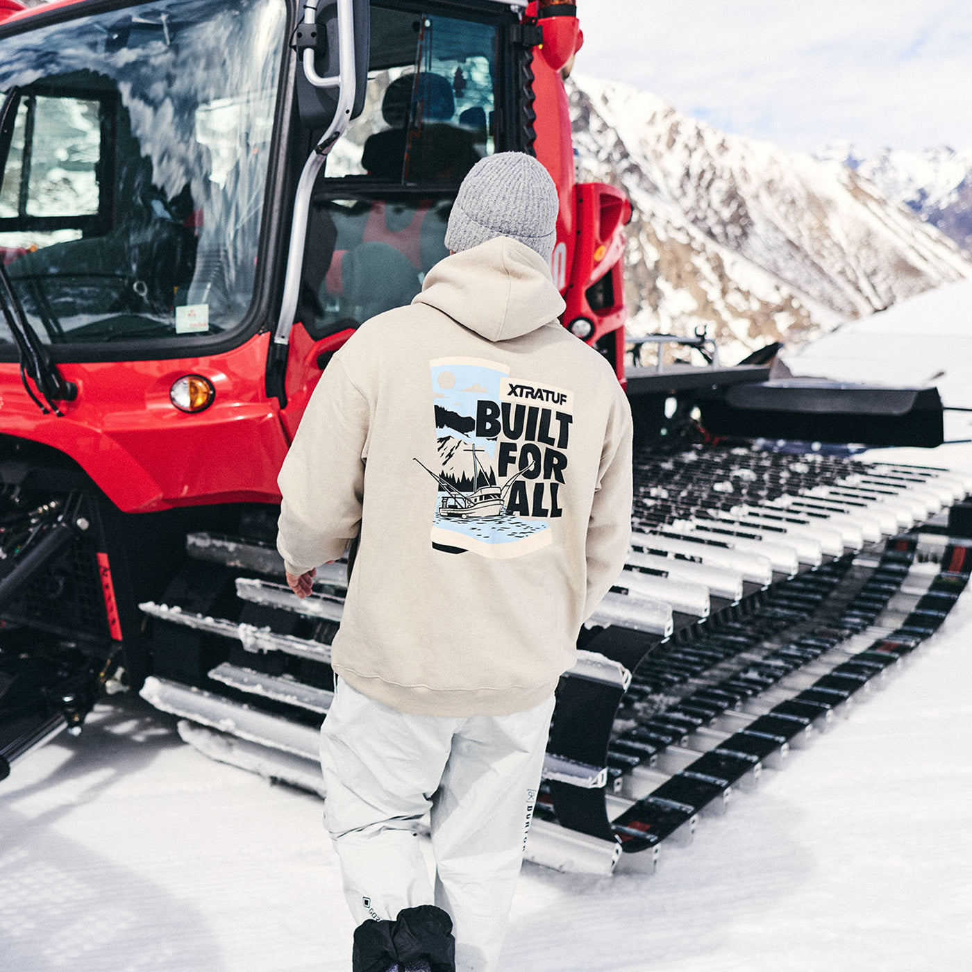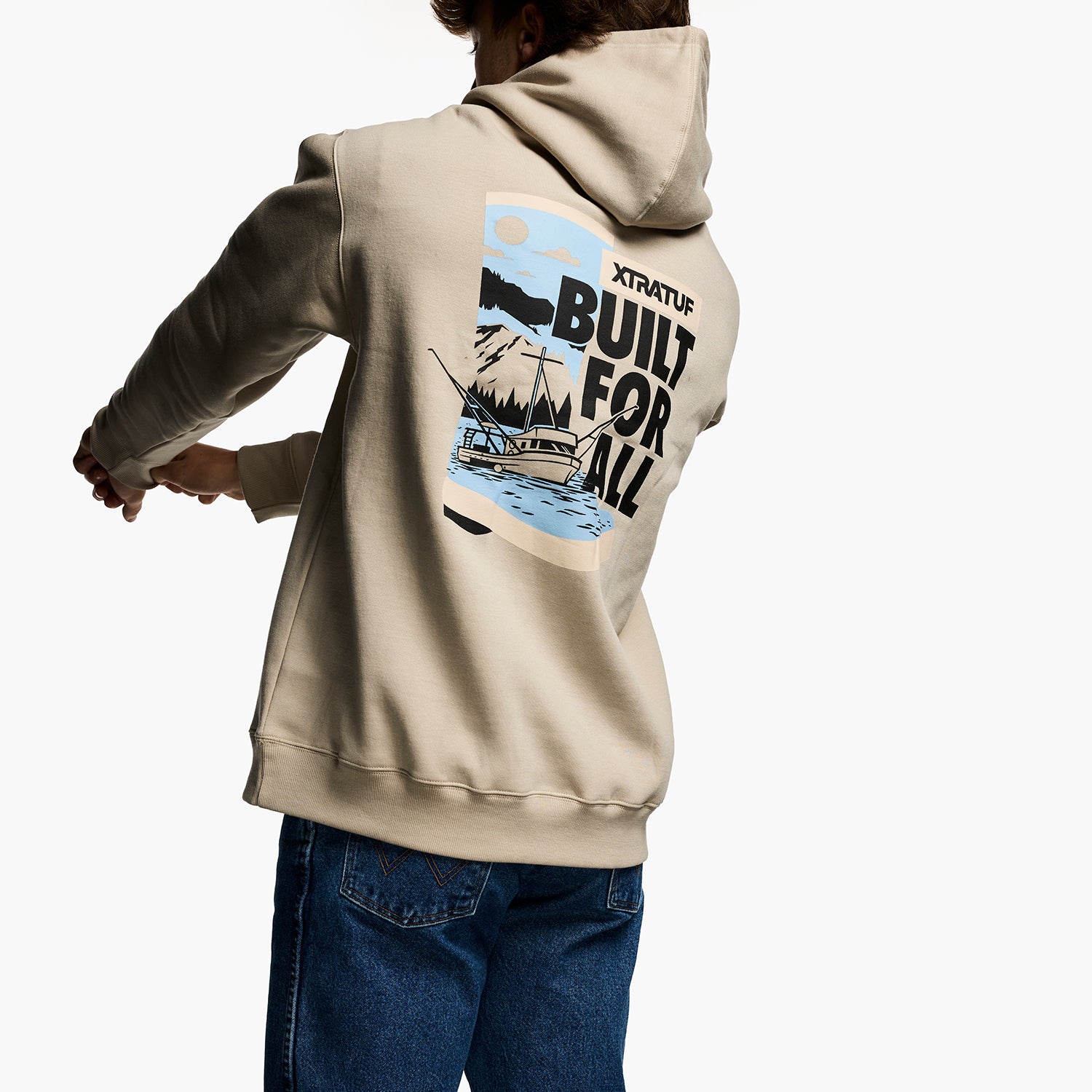 The Built For All hoodie comes in an Abby Stone colorway and features a back screen-printed graphic. Available in S-XXL.