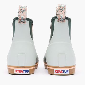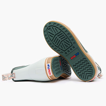 The Ankle Deck Boot collection has been crafted specifically for off-shore anglers. Anglers are athletes. and like any athlete they demand the best footwear to help them perform at a high level. We’ve created a lightweight design with the same slip-resistant Chevron outsole found on our Legacy boots. The 6 ankle deck boot is a great option for any on-the-water athlete looking for protection with slip-on-and-go styling. This boot is constructed with hand-laid rubber. and so not classified as a commercial grade boot. For those looking for a commercial grade ankle height deck boot please search for the Wheelhouse Boot. This style also features new seasonal floral print pull tabs.