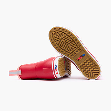 Our best-selling Women’s Ankle Deck Boot featuring original prints designed by two young Alaskan Fishermen inspired by the wilderness of Alaska and the sustainable fisheries of the North Pacific. Claire and Emma. The Salmon Sisters. create their designs inspired from their life on the water and love for the ocean. The Red Sockeye print is designed after the prized species in Alaska. and pays homage to the salmon life cycle. When sockeye migrate back to fresh water at the end of their life they turn a vibrant red. This design is meant to honor an incredible creature and serve as a reminder of how important it is to protect and be stewards of the fish.